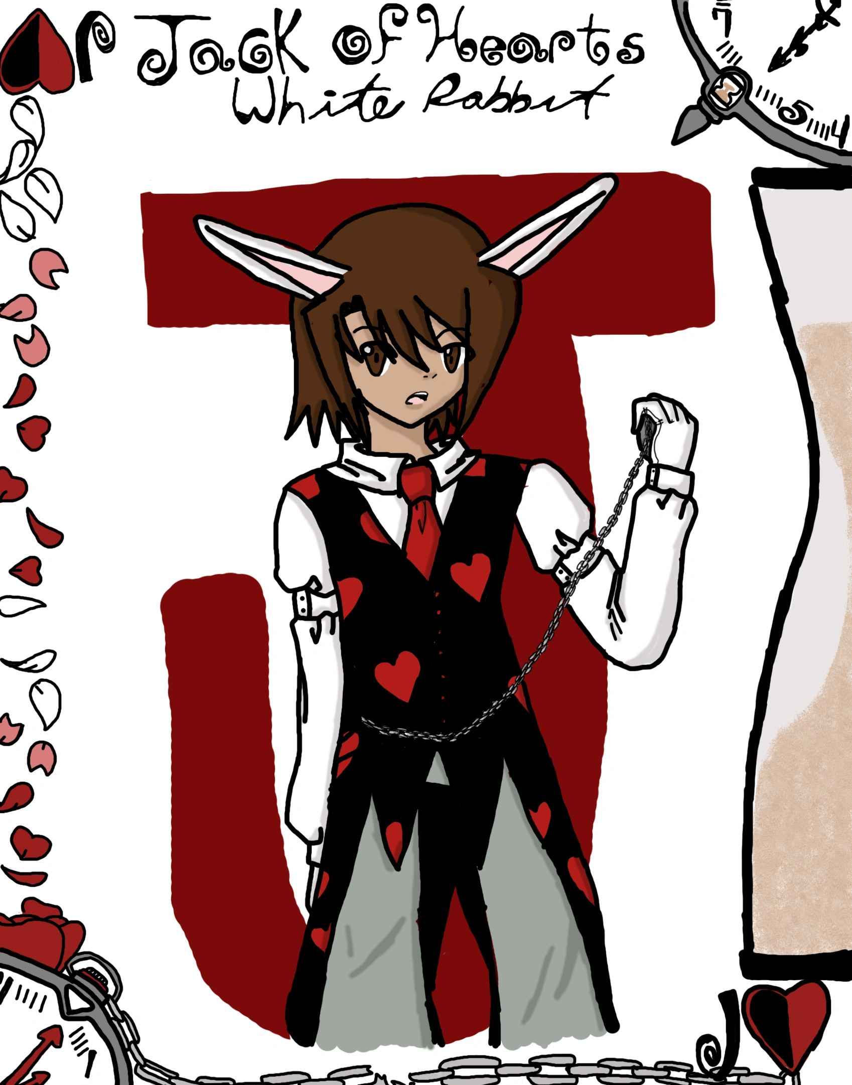 Basil was once the Jack of Hearts and white rabbit in the Card Court, but was exiled, stripped of his rank, and had his ears taken for a crime against the Queen of Diamonds that he did not commit. To give him a place to go, they reincarnated him to his current form, a world away from his original home. He now refers to this as his "past life."