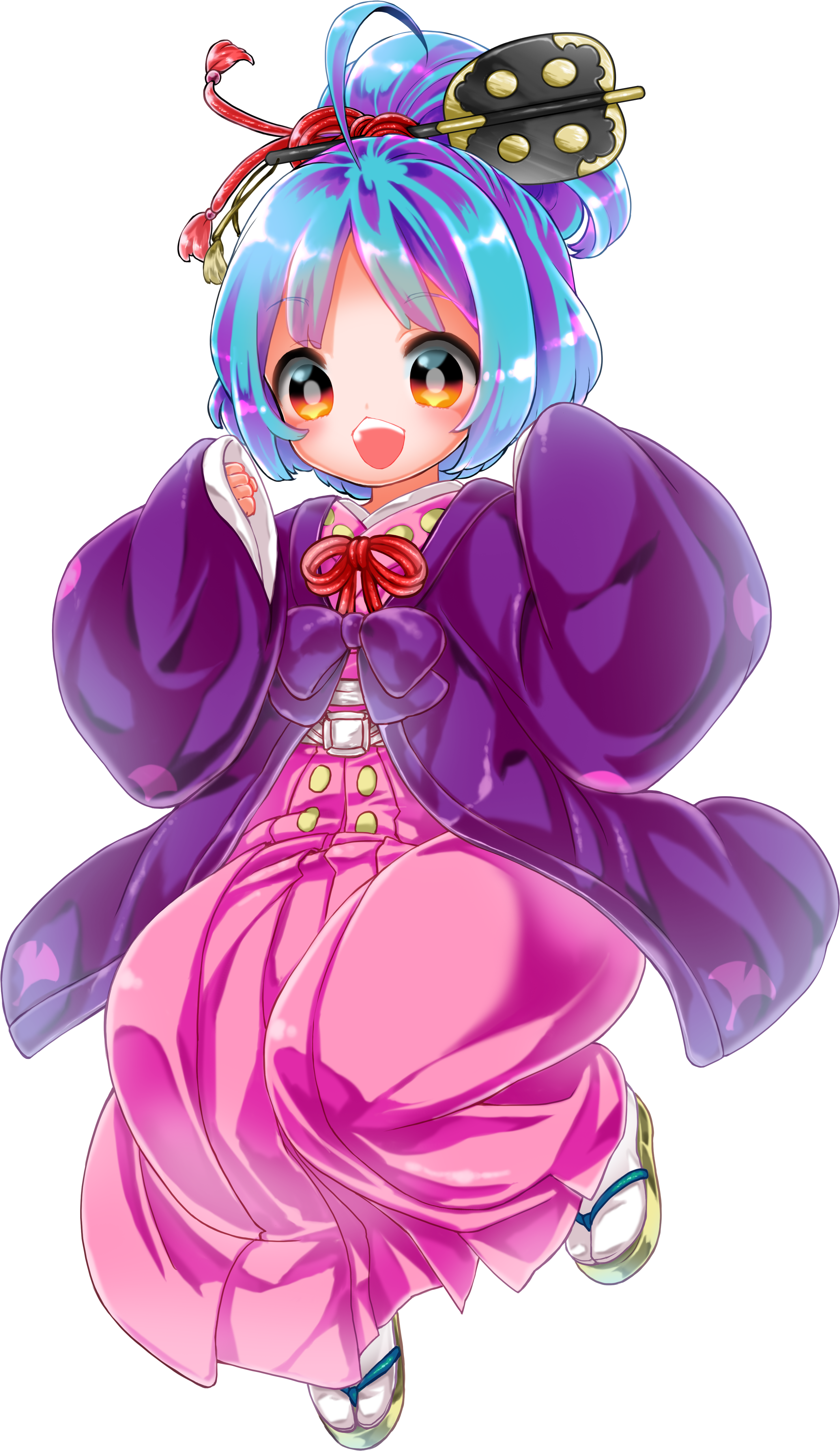 Oedo Chanko's first official artwork was published on March 20, 2013 when she got her own official Twitter account; there she was depicted riding a then-unnamed giant robot suit shaped like a sumo wrestler.[1] This sumo robot was given the name Genjimaru one week earlier.[2] Her first mention on Tohoku Zunko's official Twitter happened three months later.[3]