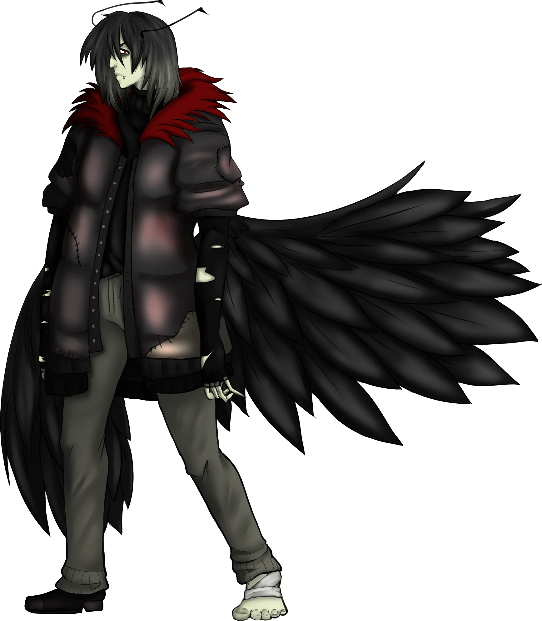 Many believe him to be a demon of sorts, though none can be too sure. His true identity and purpose--if he has one--remain unclear and borderline conspiracy-oriented. He does not seem to abide by the common laws of what demons and angels abide by, nor does he seem to particularly answer to any higher or lower calling. He is boundless and unruly in his actions. Despite not knowing the true intentions of him, numerous of the most powerful angels have attempted to bring him to justice or put an end to the anguish he inflicts to no avail; not to mention his slickness. He is ever-elusive and nearly impossible to keep up with, as he is able to leave behind such little noticeable remnants of his presence. He has a stronger hold on the human mind than any average creature of the Underworld. As such, his species and overall goal is unknown.