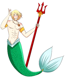 Ilari was born to Amphitrite and Poseidon and is the pride and joy of Atlantis. Ilari is royalty but rarely ever recognizes his status. He is grateful for everything and has a penchant for sharing and giving his things to people he thinks needs them more. Ilari was a happy child and his demeanor never seems to change. He always wants to befriend everyone he meets and remembers those who bring him gifts. While he has little restrictions, Poseidon still worries about him being out on his own, hoping that his kingdom knows better than to try anything with his son. Ilari has the same powers as Poseidon, but has much less control over and knowledge of them. Ilari mostly swims the perimeter of the boardwalk and entertains the tourists. Ilari also has the power to walk on land, so he amuses himself above water as well. Ilari's boyfriend is Rex, an octopus in a mafia family.