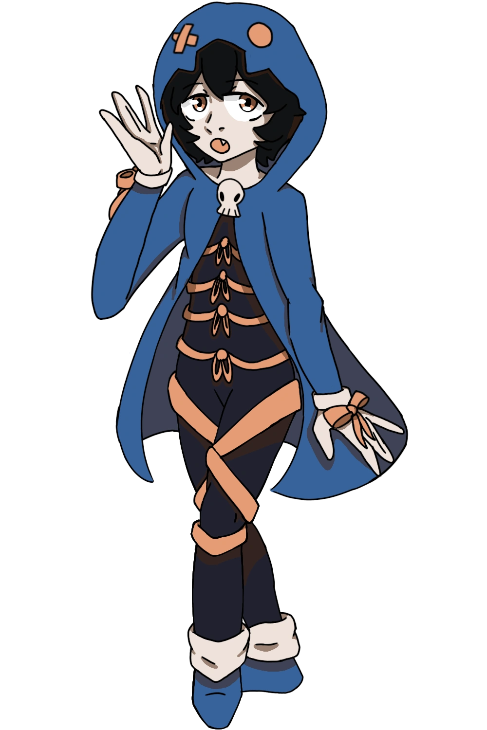 - Top color: blue hoodie