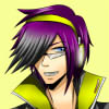 Hair: Purple with a black highlight on her fringe that covers her right eye