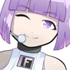 Hair: Violet; Straight bob cut that reaches down to her chin; Bangs go straight across below the brows.