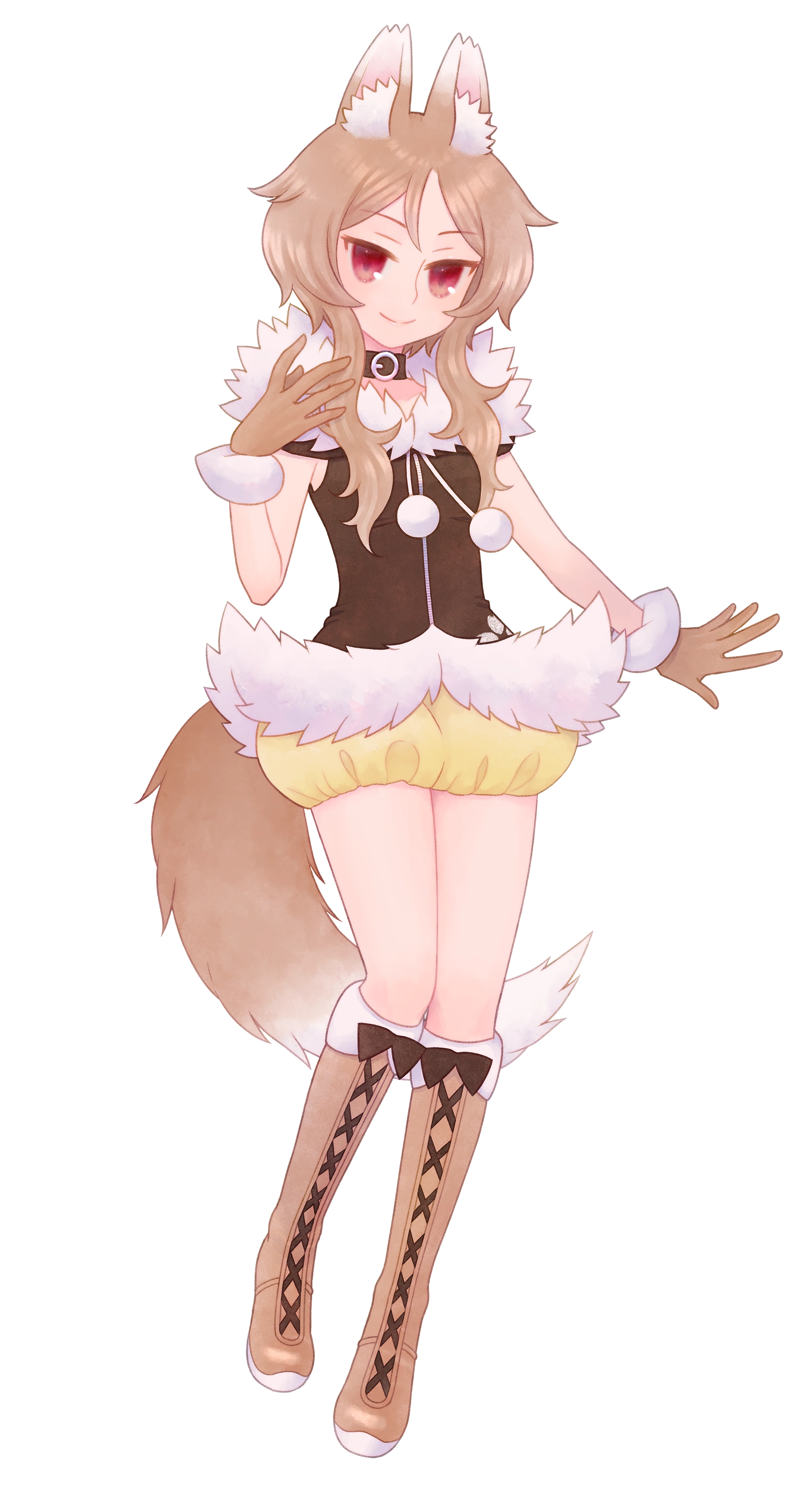 - Others: Has a long brown wolf tail