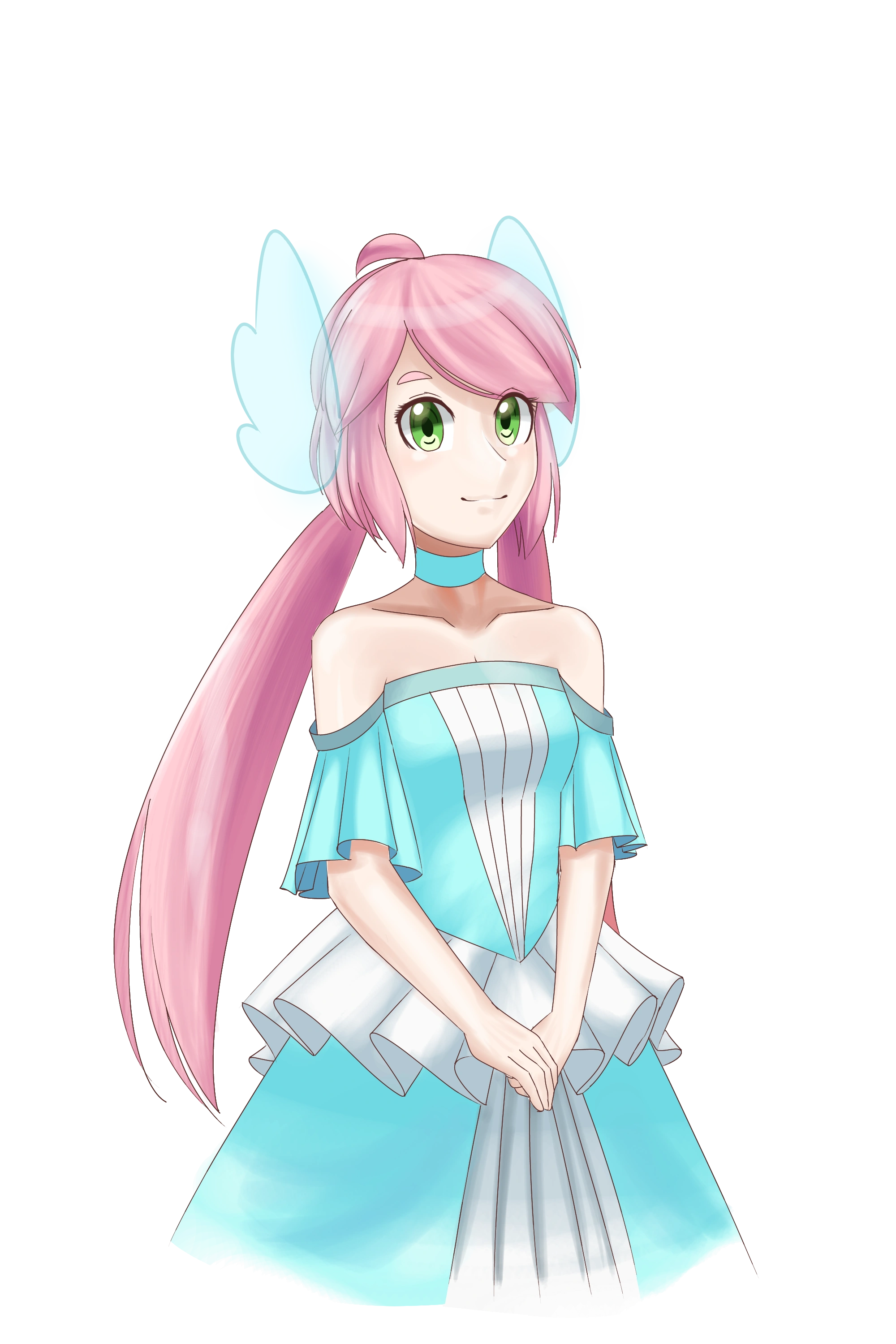 - Hair color - Pink peach, ahoge and twintails