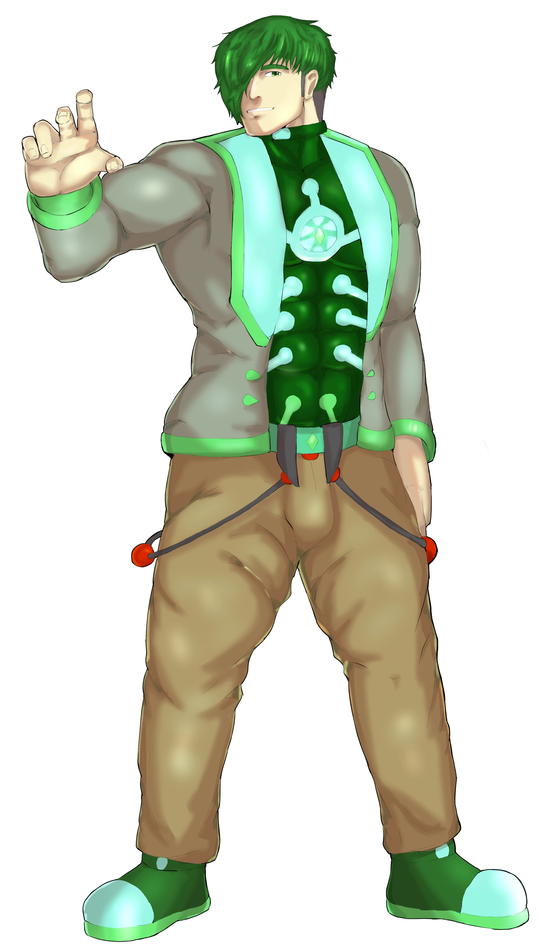 - Outfit - Green bodysuit, Gry jacket with neon green accents, teal belt, with black wires with a red pearl attached to the center of the wire, light brown pants, green shoes with bark green soles and light blue accent
