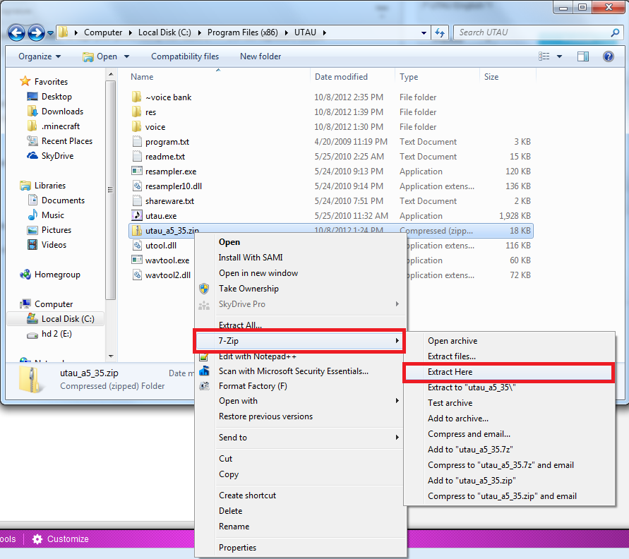 You drag and drop the zipped folder into the UTAU folder (not the UTAU icon), and it should work.
